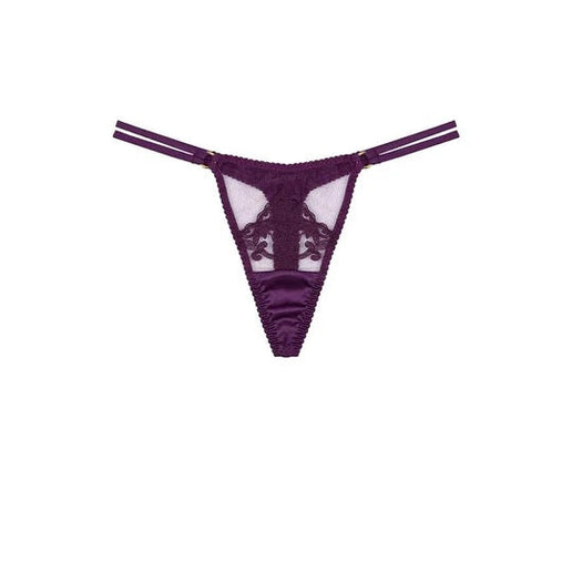 Fleur of England Cecilia G-String - Crafted in Europe using the finest Italian tulle, luxurious purple silk, and bespoke embroidery designed by brand founder Fleur, the Cecilia Silk thong is inspired by our bestselling silhouette and elevated for the new season. With double silk side straps and sensual embroidery placements, this silk thong brings a touch of luxury to your everyday.