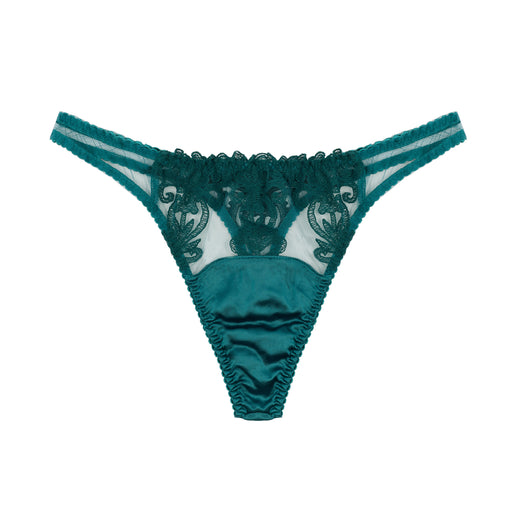 Fleur of England Olivia Luxury Thong - Revel in the richness of British Heritage with Olivia – A celebration of design excellence and the grandeur of decorative art. Crafted in an enchanting shade of peacock green, the Olivia collection draws inspiration from the ornate legacy of the artist William Morris, reinterpreted through Fleur’s signature lens of sensual sophistication.